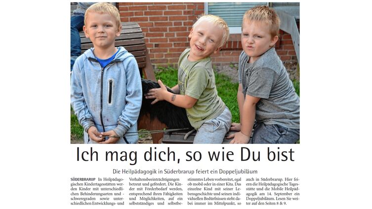 Artikel "Ich mag dich, so wie Du bist - Die Heilpädagogik in Süderbrarup feiert ein Doppeljubiläum" aus der "Wochenschau" vom 09.09.2018