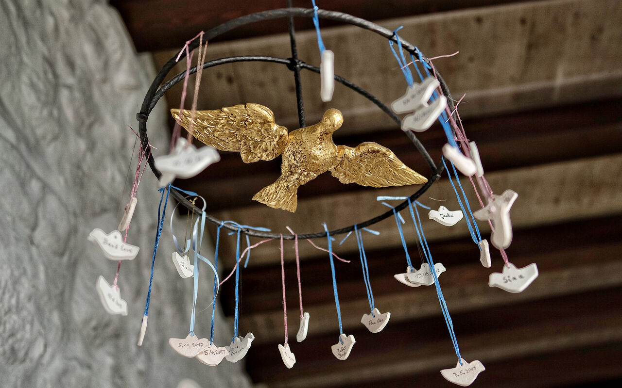 In der Südwand findet sich ein ursprünglich nach außen geöffnetes mittelalterliches Pönitenzfenster, das den im Mittelalter vom Zutritt zur Kirche teilweise ausgeschlossenen Sündern und Pestkranken eine gewisse Teilnahme an der Messe ermöglichte. Jetzt steht darin als Zeichen der Sündenvergebung eine zierliche barocke Christusfigur. Ein kleines barockes Mariengemälde wurde in jüngster Zeit aus Privatbesitz geschenkt.
