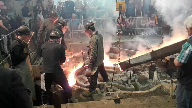 Drei neue Bronzeglocken sind am 13. Mai in der Glockengießerei Rincker in Sinn (Lahn-Dill-Kreis) gegossen worden: