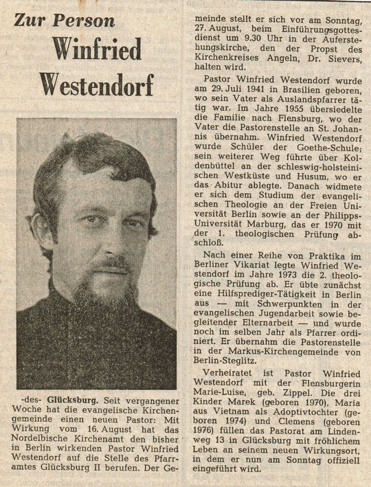 Pastor Winfried Westendorf wurde am 27. August 1978 in die Pfarrstelle II eingeführt.