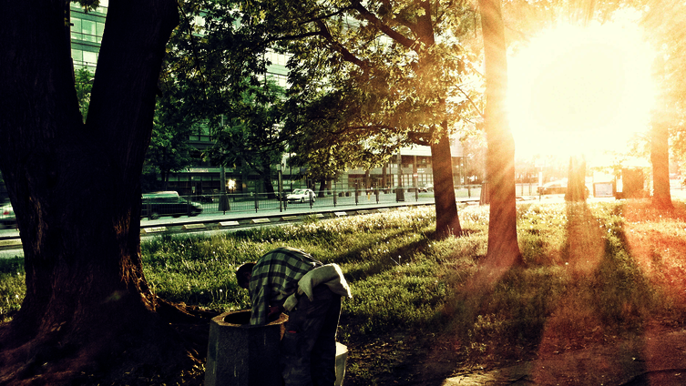 Er sucht etwas im stinkenden Unrat, etwas, was vielleicht noch von Wert ist.