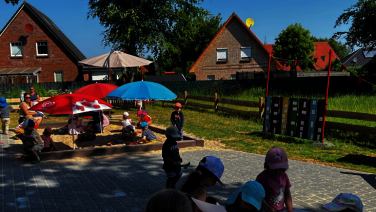 Die Kinder im Ev. Kindergarten Husby genießen den Sommer auf dem neuen Außengelände.