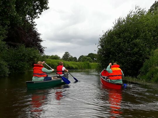 Eine Kanutour auf der Treene stand auch auf unserem Programm gemeinsam setzten wir die Boote in Sollerup ein und fuhren bis nach Treia zum Gemeindehaus. Unterwegs gab es eine Picknick, bei dem sich alle Kanuten für die zweite Hälfte stärken konnten.