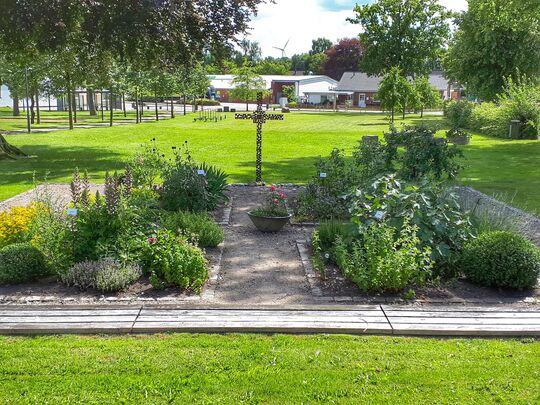 Das Umgrenzte dieses Bibelgartens macht wie die Umzäunung anderer Gärten deutlich: “Ein Garten ist ein besonderer Raum, eine Welt für sich - ein Lebensraum, der Geborgenheit schenkt, der an eine lebensfreundliche Ordnung erinnert inmitten einer Welt von auch lebensfeindlicher Unordnung. Gerade in den letzten Wochen höre ich immer wieder die Worte: Uns geht es doch gut hier, wir können uns nicht beklagen, wir haben doch den Garten. Der Garten als Ort der Geborgenheit, ja, vielleicht der Freiheit in Zeiten von Corona.