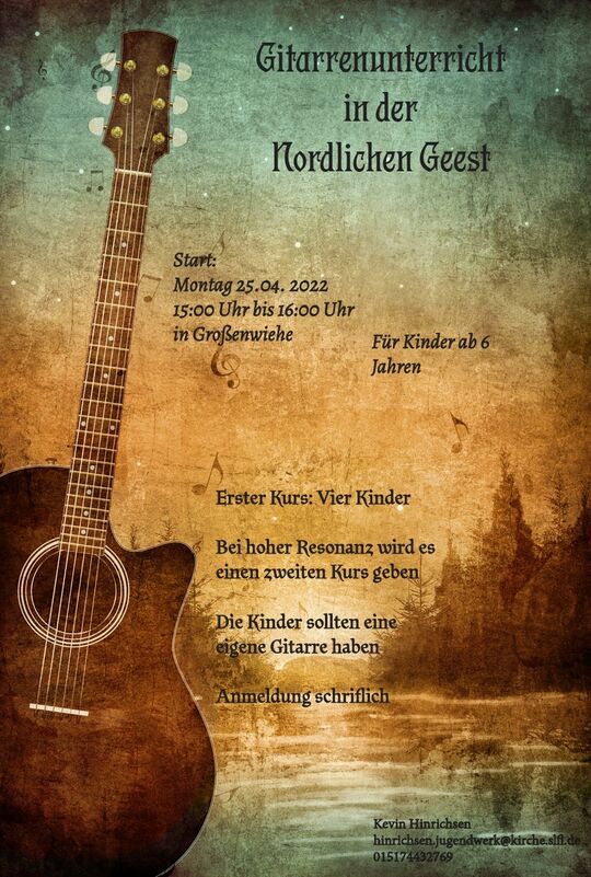 Alle Infos für den Gitarrenunterricht sind auf diesem Plakat zu finden.
