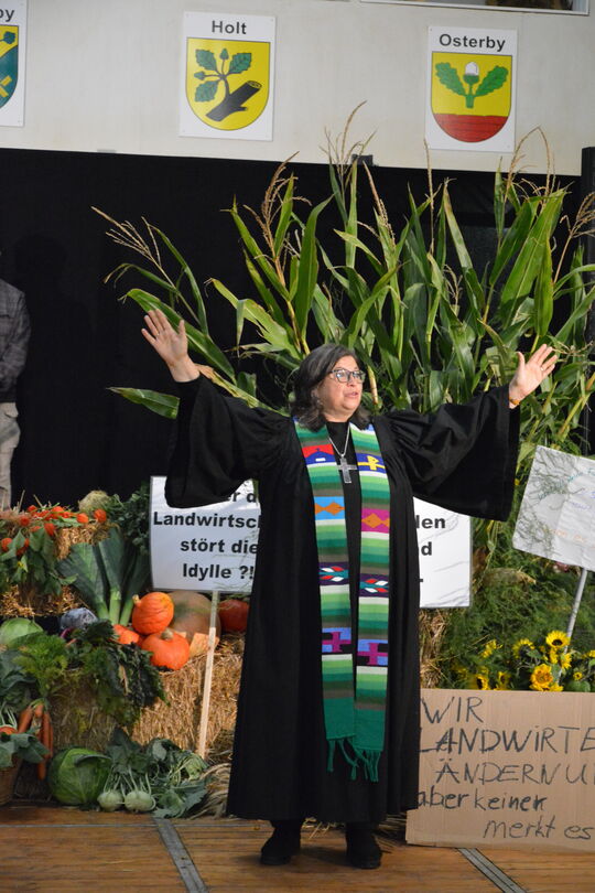 Den Kreiserntedankgottesdienst hatte ein Arbeitsgruppe mit Vertreter*innen des Ev.-Luth. Kirchenkreises Schleswig-Flensburg, dem Kreisbauernverband, dem LandFrauenKreisVerband, der Land-Jugend und der Kirchengemeinde Medelby gemeinsam vorbereitet.