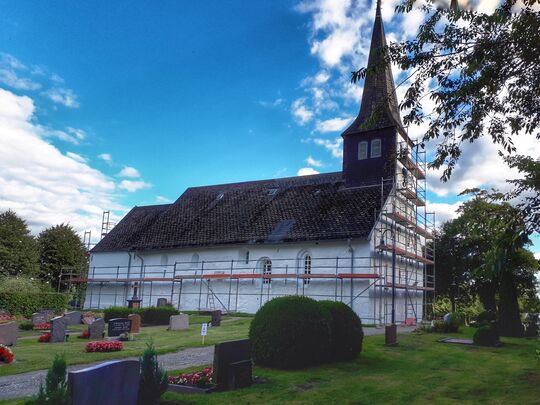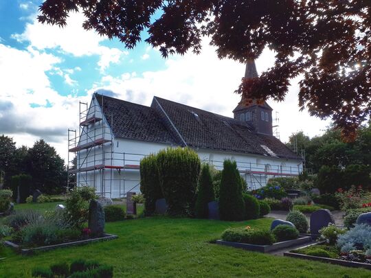 Über einige Wochen waren an der Kirchenfassade Veränderungen zu beobachten: Das Gebäude wurde ringsherum eingerüstet, schmiedeeiserne Elemente aufwändig aufgearbeitet und die Natursteinmauern mit einer speziellen Kreuzwischtechnik für historisches Mauerwerk neu verputzt. Dank der guten Witterung kam die Firma Heisch, an die der Auftrag der Außensanierung nach Ausschreibung in Abstimmung mit dem Landeskirchenamt ging, gut voran. Kürzlich wurden die Malerarbeiten fertiggestellt und das Gerüst wieder abgebaut. Nun kann man unsere wunderschöne Kirche, St. Matthäus zu Medelby, wieder im Sonnenlicht strahlen sehen- ein echter Hingucker. Aber das ist noch nicht alles. Auch auf eine Renovierung des Innenraumes kann man sich freuen. Ebenfalls soll die Abschiedshalle einen neuen Innenanstrich bekommen. Außerdem ist eine Instandsetzung der Wege geplant, damit die notwendige Sicherheit beim Begehen des Kirchengeländes gewährleistet bleibt. Im Zuge der Pflasterarbeiten werden auch die Fallrohre instand gesetzt. Diese Arbeiten sollen zeitnah umgesetzt werden. Während der Baumaßnahmen im Innen- und Außenbereich werden keine Gottesdienste in der Kirche stattfinden können. Über Alternativen informieren wir über die bekannten Kanäle.