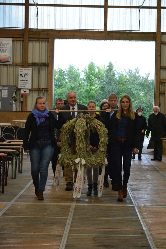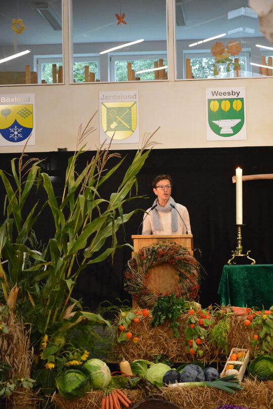 Am gestrigen Sonntag (3.10.2021) feierten knapp 100 Gäste in der Medelbyer Kirchspielhalle gemeinsam den Kreiserntedank-Gottesdienst, hörten das Grußwort des stellvertretenden Kreispräsidenten Frank Storrjohan und aßen anschließend Suppe bei einem Schnack.