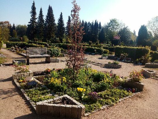 Duftende und blühende Pflanzen wachsen in mit Granit eingefassten Pflanzkübeln, die der Grabanlage ihre Prägung geben. In dieser Urnenreihengrabstätte werden die Urnen der Reihe nach beigesetzt. Die Pflege übernimmt der Friedhof. Die Angehörigen haben aber die Möglichkeit, auch selbst so lange wie möglich die Grabstätte zu pflegen. Da die Beisetzung der Reihe nach erfolgt, empfiehlt sich dieses Feld für Paare nicht