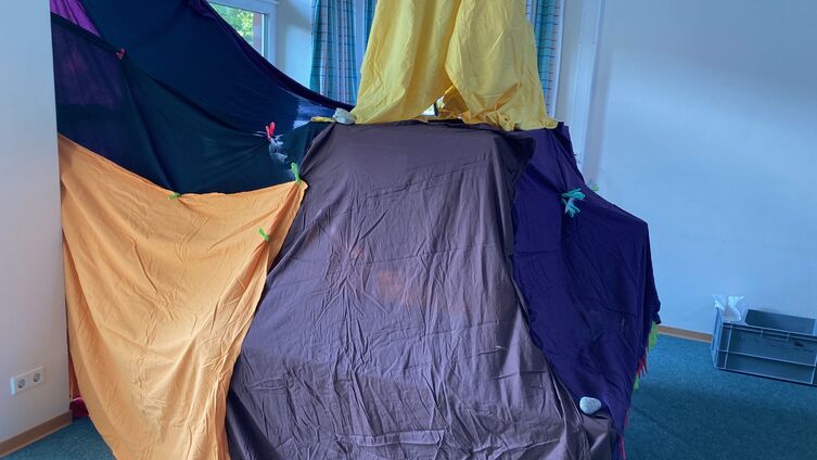 In diesem abgedunkelten Raum kann man sitzen und zur Ruhe kommen. Die Jugendlichen waren nur schwer zu bewegen, wieder heraus zu kommen. Ein Raum für das Gebet.