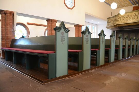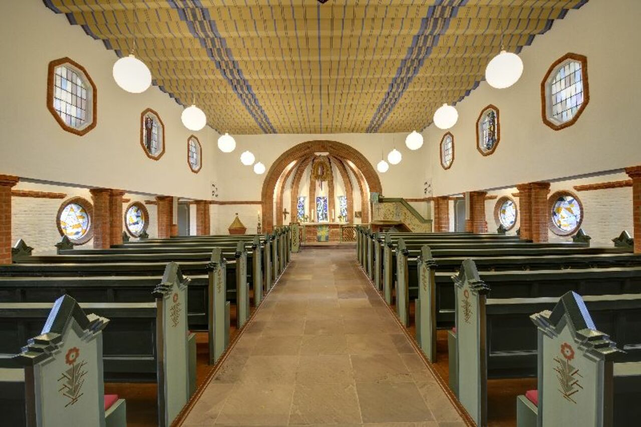 Dazu passen die Blumen an den Bankreihen, aber auch das Licht der Sonne, das von der Kanzel her erstrahlt. Die Idee dahinter: Die Besucherinnen und Besucher sollen die Fülle der Natur, die Schöpfung Gottes erleben.
