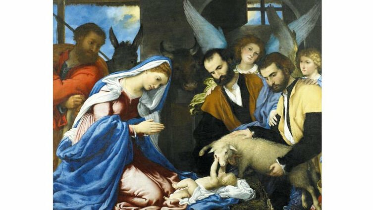 Sie halten das fast fünfhundert Jahre alte Bild „Die Anbetung der Hirten“ in Händen. Der venezianische Maler Lorenzo Lotto hat es gemalt.