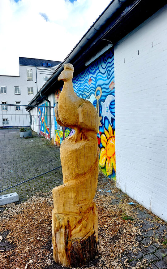 Am ehemaligen Sultanmarkt hat die Künstlerin Silvana Sundberg aus regionalem Eichenholz diese Skulptur geschaffen.