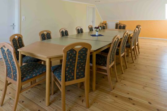 Im Obergeschoss befindet sich ein Seminarraum für bis zu 16 Teilnehmer: