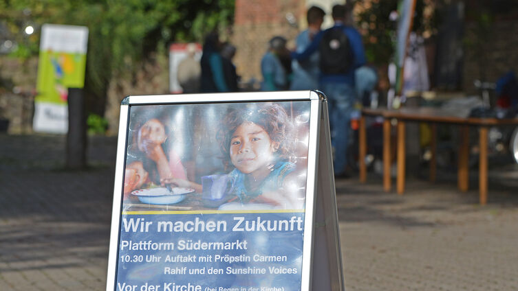 "Es ist dringend an der Zeit, dass wir neue Wege gehen und erste Schritten tun", sagte Pröpstin Carmen Rahlf zur Eröffnung des Aktionstages „Wir machen Zukunft“. Er fand am letzten Sonnabend (7.9.2019) vor der Flensburger St. Nikolai-Kirche statt.