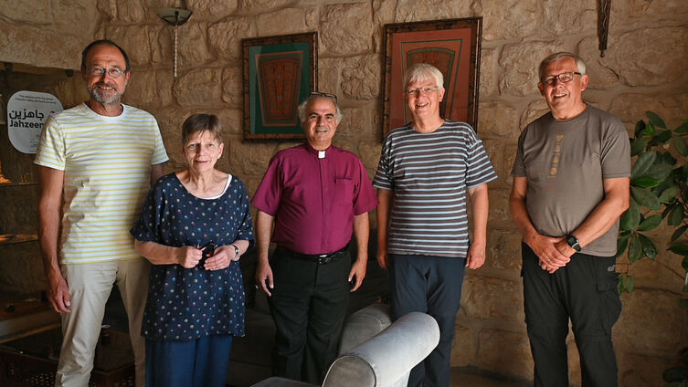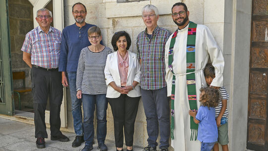 Die kleine Delegation des Kirchenkreises Schleswig-Flensburg war Ende Juni das erste Mal seit Beginn der Corona-Pandemie in den Nahen Osten gereist, um die dort bereits seit vielen Jahren bestehenden Partnerschaften zu pflegen. Ziel war u. a., den neu gewählten Kirchenvorstand in Beit Jala kennen zu lernen. In einem sehr angeregten Austausch wurde die Bitte geäußert, in den Mittelpunkt der Partnerschaft die Beziehung zwischen Menschen zu stellen, die im Glauben miteinander verbunden sind. So wurde das Anliegen geäußert, dass möglichst viele Menschen in unserem Kirchenkreis erfahren, dass es Christen in Palästina gibt. Es handelt sich um eine kleine Minderheit in einer schwierigen Situation, die u. a. durch die Folgen israelischer Besatzung und wirtschaftliche Probleme gekennzeichnet ist. Um so wichtiger sind Kontakte zu Kirchen außerhalb Palästinas, wie Sani Ibrahim Azar, Bischof der Evangelisch-Lutherischen Kirche in Jordanien und im Heiligen Land, in einer spontanen Begegnung mit der Delegation hervorhob. Er freue sich immer, wenn er Mitglieder der Nordkirche in Palästina treffe.