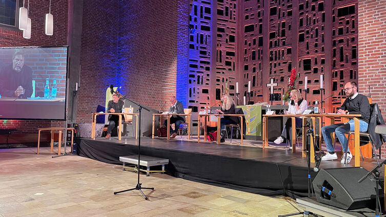 Es war ein spannender Abend, musikalisch umrahmt vom Gitarristen Kalle Willems und moderiert von Nora Steen, Christian Jensen Kolleg und Joachim Kretschmar, Akademie der Nordkirche. Die Organisation vor Ort lag in den tatkräftigen Händen der Jugendkirche, die auch die Technik gemeinsam mit Jam Studio betreute.