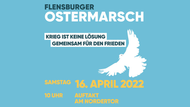 Am 16. 4. 2022 beginnt um 10.00 Uhr am Flensburger Nordertor ein Ostermarsch. Unter dem Motto „Krieg ist keine Lösung - Gemeinsam für den Frieden“ bewegt sich der Zug durch die Innenstadt über das Hebroni Denkmal bis hin zum Deserteursdenkmal in der Roten Straße. Pröpstin Rebecca Lenz und Flensburgs Stadtpastor Johannes Ahrens sprechen die Grußworte.