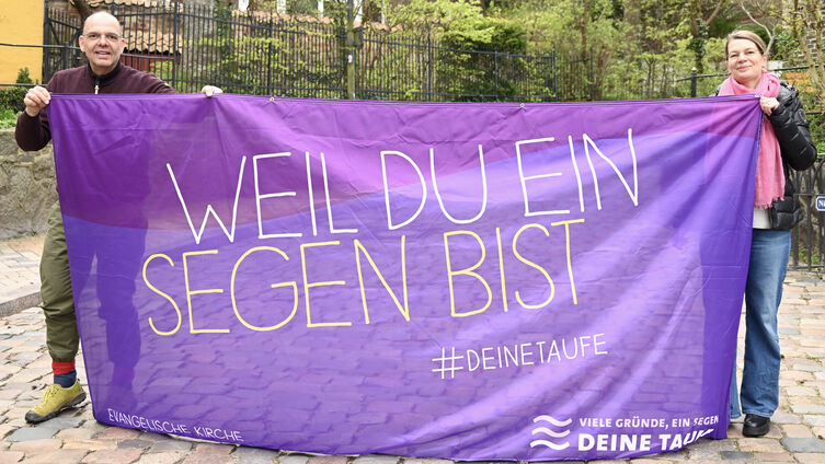 Anstatt – wie üblich – einen reinen Info-Pavillion zu bespielen, bieten Stadtpastor Johannes Ahrens und Diakoniepastorin Birgit Lunde Spontantaufen vor Ort an.