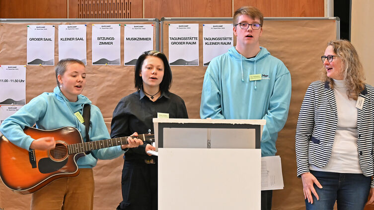 Vor dem Barcamp gestaltete die Jugendvertretung eine Andacht und Propst Helgo Jacobs und Pröpstin Rebecca Lenz gaben einen Einblick in die Arbeit des Kirchenkreisrates und den begonnenen Zukunftsprozess: 15 Transformationsprozesse hat der Kirchenkreis auf den Weg gebracht; diese sollen in den kommenden fünf Jahren umgesetzt werden. „Wir brauchen Transformation um zukunftsfähig zu bleiben. Und gleichzeitig müssen wir aufpassen, dass die Kirche nicht wegen ständiger Umbaumaßnahmen geschlossen bleibt“, fasste Propst Helgo Jacobs die Herausforderung zusammen. Als Fokusthemen hat der Kirchenkreisrat unter anderem den Klimaschutz, die Digitalisierung mit Intranet und Dokumentenmanagement, das betriebliche Gesundheitsmanagement, das Friedhofswerk, das Gemeindemanagement, den Ausbau des Kirchbergs in Neukirchen sowie die Kitafinanzierung benannt.